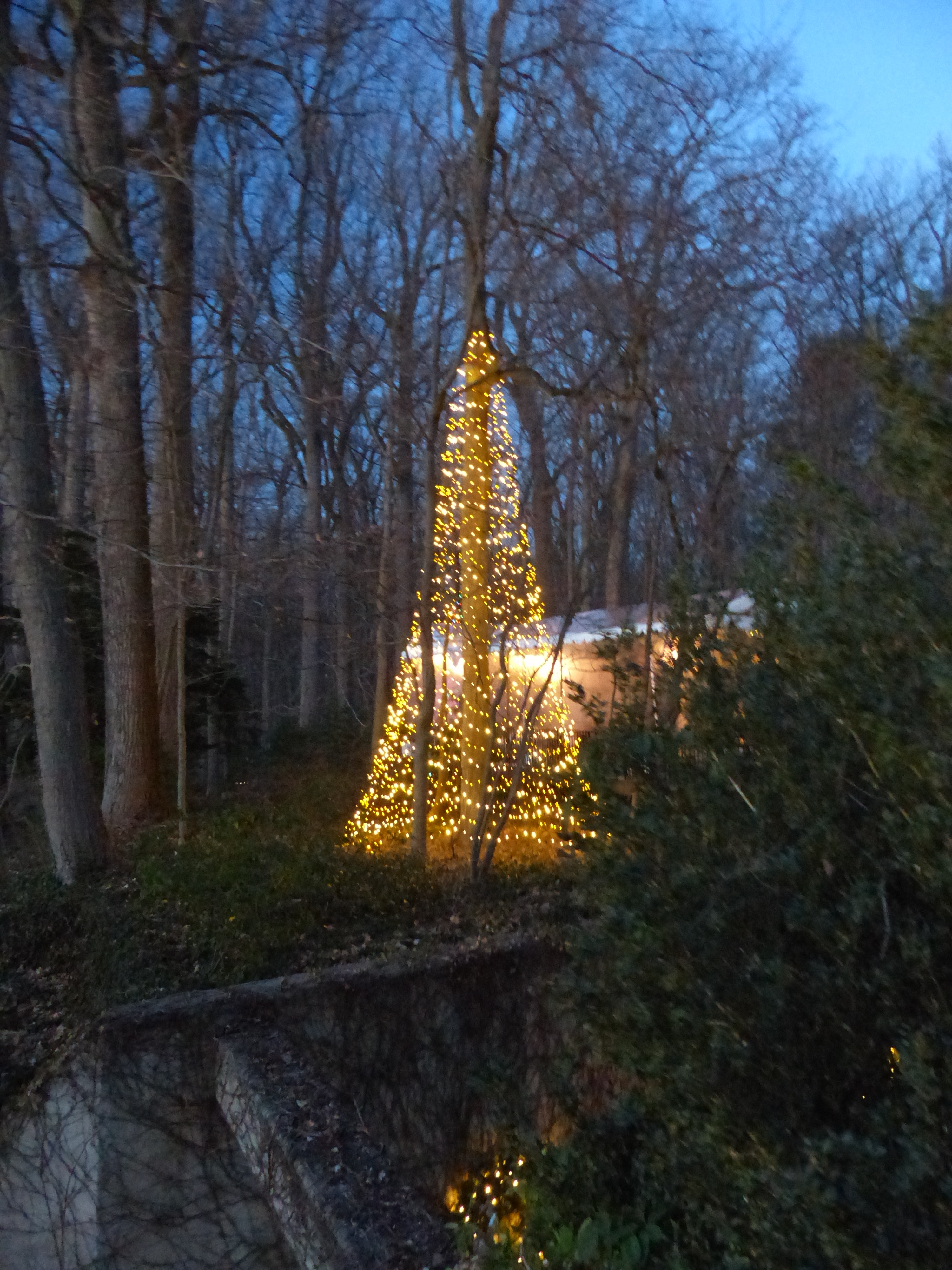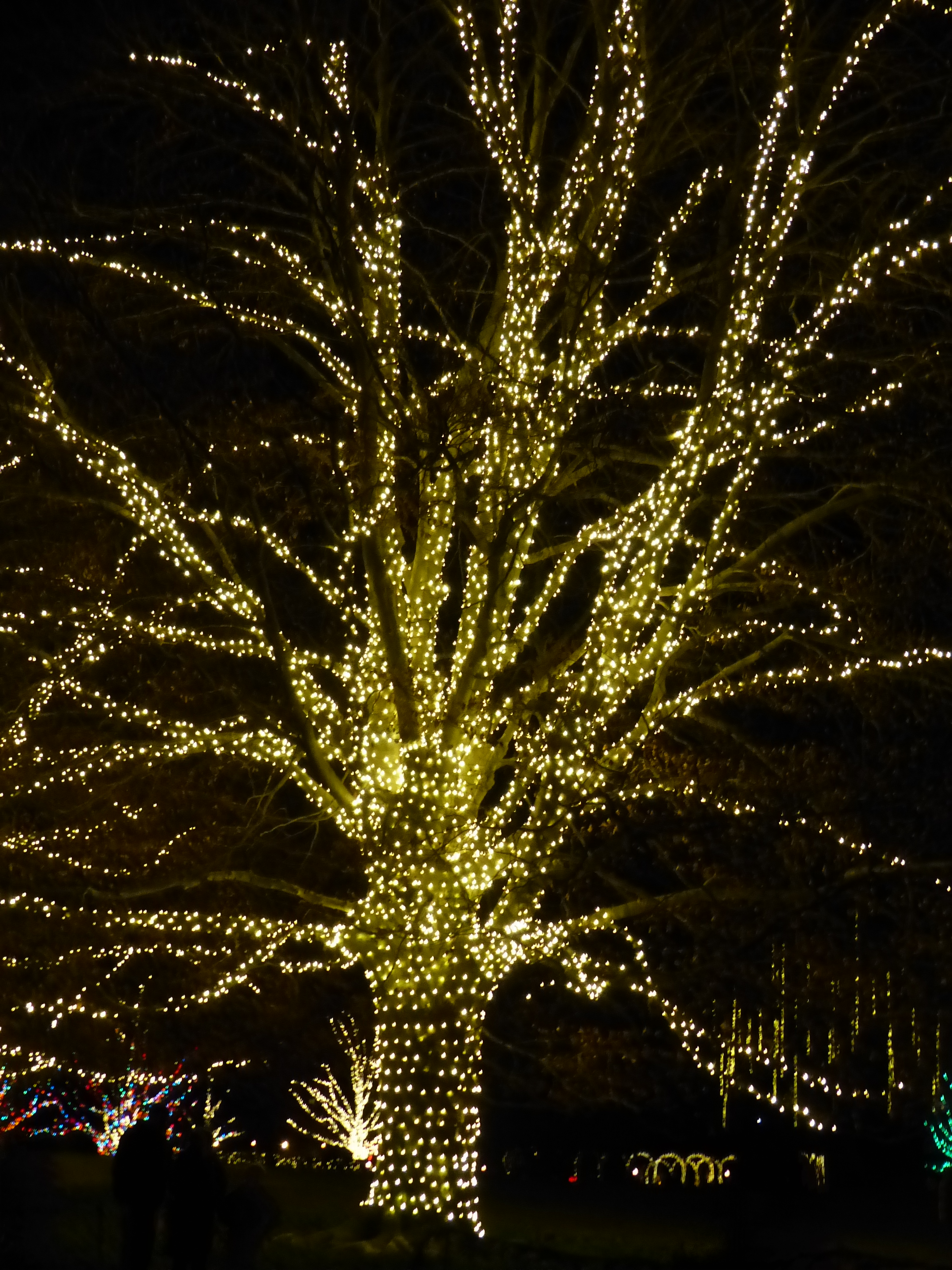 One of my favorite memories from childhood is driving around in the family car to look at Christmas lights. The lights at Longwood are gorgeous, but they don’t hold a candle to the simple, elegant, sometimes gaudy lights we could find right in Savannah, Georgia. Including the house that always had Santa and his reindeer galloping across the roof with Rudolph’s red nose in the lead!