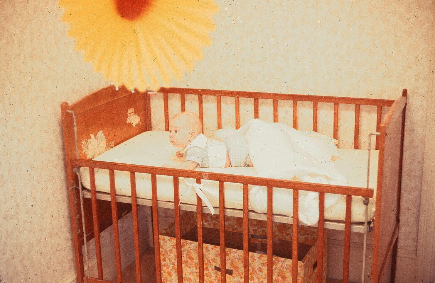 You may find the next few photos disturbing. Don’t forget this was 1968, not 2015! There were no laws about how to travel in cars with children, and no laws about cribs. Here’s the first photo: