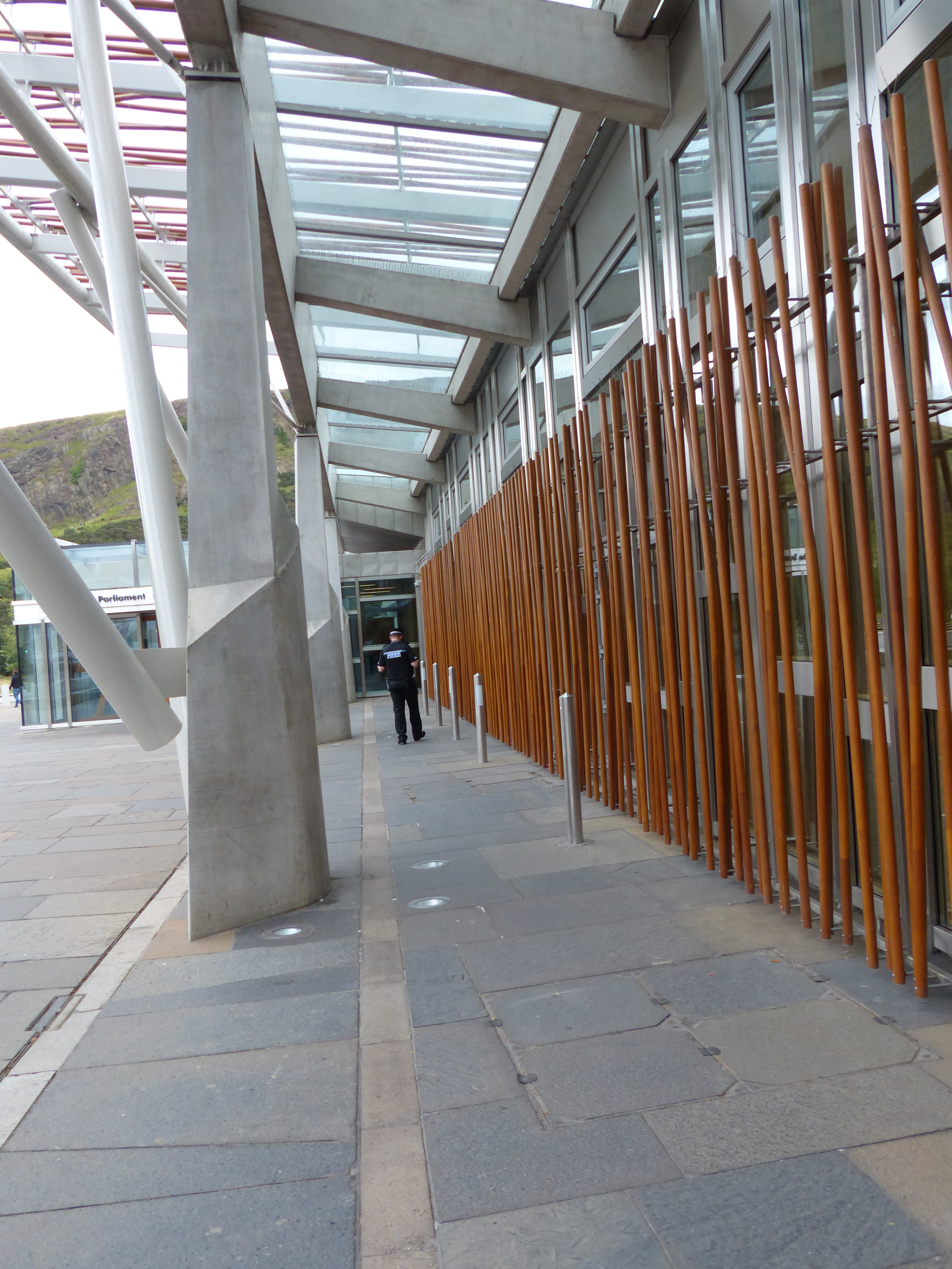 Here’s another look from the foot of The Royal Mile as we’re approaching the public entrance to the Scottish Parliament Building.