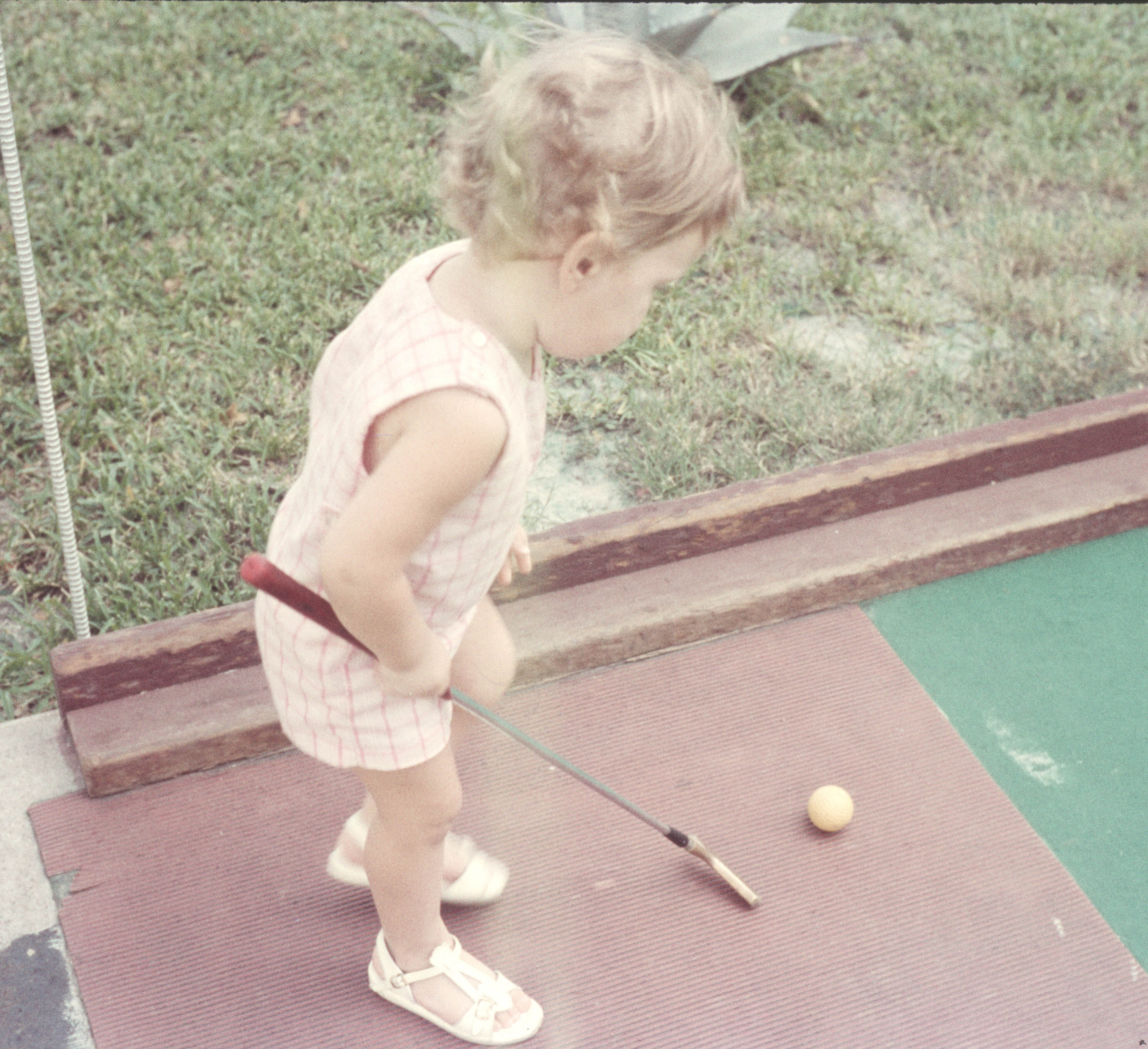 Here we are at a miniature golf course, a first for our children. Clay and I are playing by the rules; Diane is keeping score.