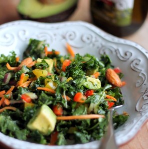 So here’s one for all you kale-lovers and wanna be lovers of kale-lovers out there. It’s simple and super good with just about anything. Or…if you decide you don’t like the taste of kale salad (don’t tell me!), you can add it to a bowl of vegetarian (or not) soup.