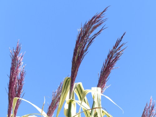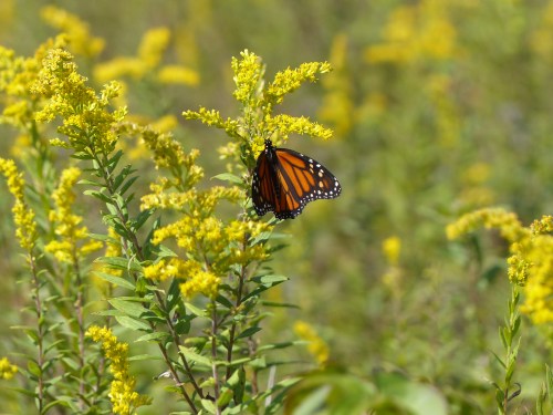 In the three photos below, even though the plant colors are subdued, they stand out against the sea of green. Not so immediately visible are three insects, all in the same photo. Can you find them? Hints: One insect is very small and dark; the others are a bit larger and are getting on with the business of producing the next generation.