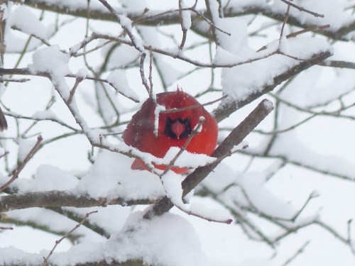 The sun is out today, though the air is still below freezing. White mounds of snow look like small mountain tops invading the back yard. The birds are basking in chilly sun, taking their turns at the birdfeeder.