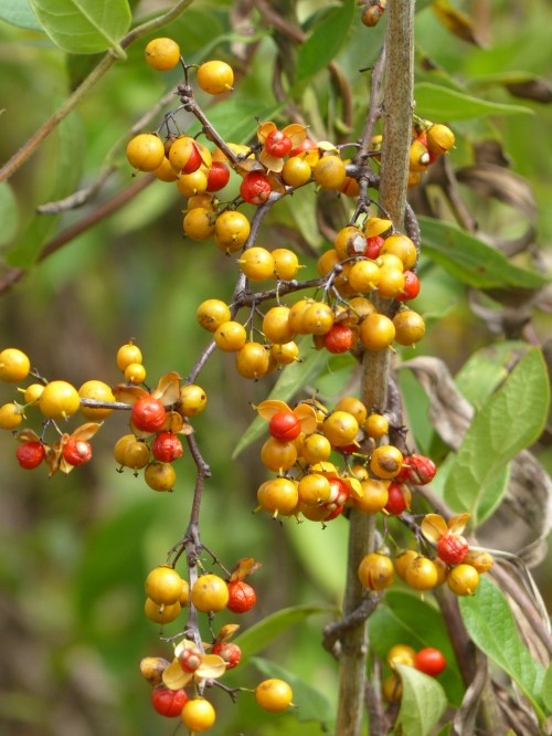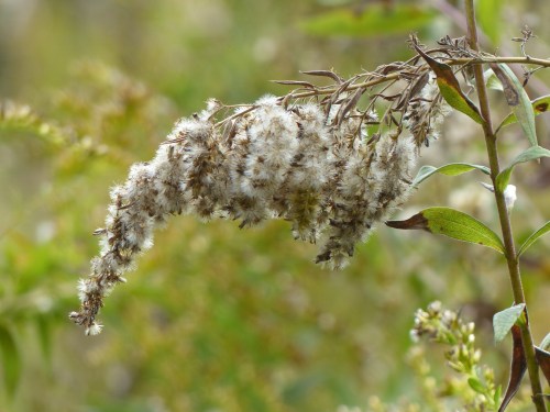 D took this photo in September 2020. So now you must imagine the tall shrub leafless. Also imagine the virtually but not totally wild possibility that birds might make a nest in one of these.