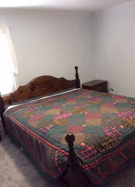 Here’s the bed all made up, minus our pillows. Right now the water is warming, and we should be in our own bed tonight. I turned on the overhead light for this one.