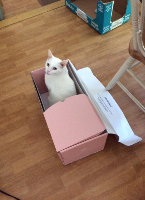 Most exciting of all was a strange ‘hole’ in the wall (above). He stalked it like a pro and then went for the jugular! (Note his straight-back all-business tail.) Sadly, the mouse hole was just an electrical outlet set back a bit into the baseboards.