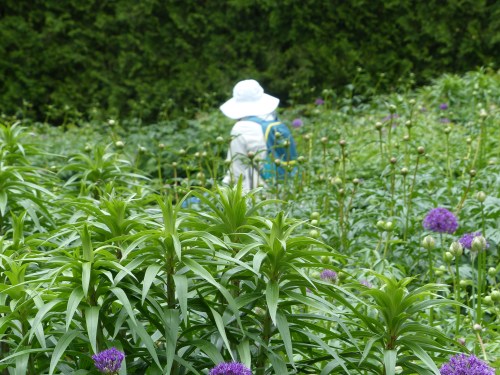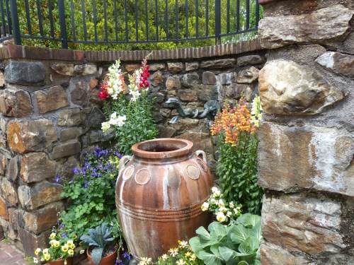 Then we checked out the Children’s Garden. Below is a clever tribute to French style sitting atop a gargoyle-like spitting fountain! It’s paired here with an elegant French-inspired Christmas tree ornament.