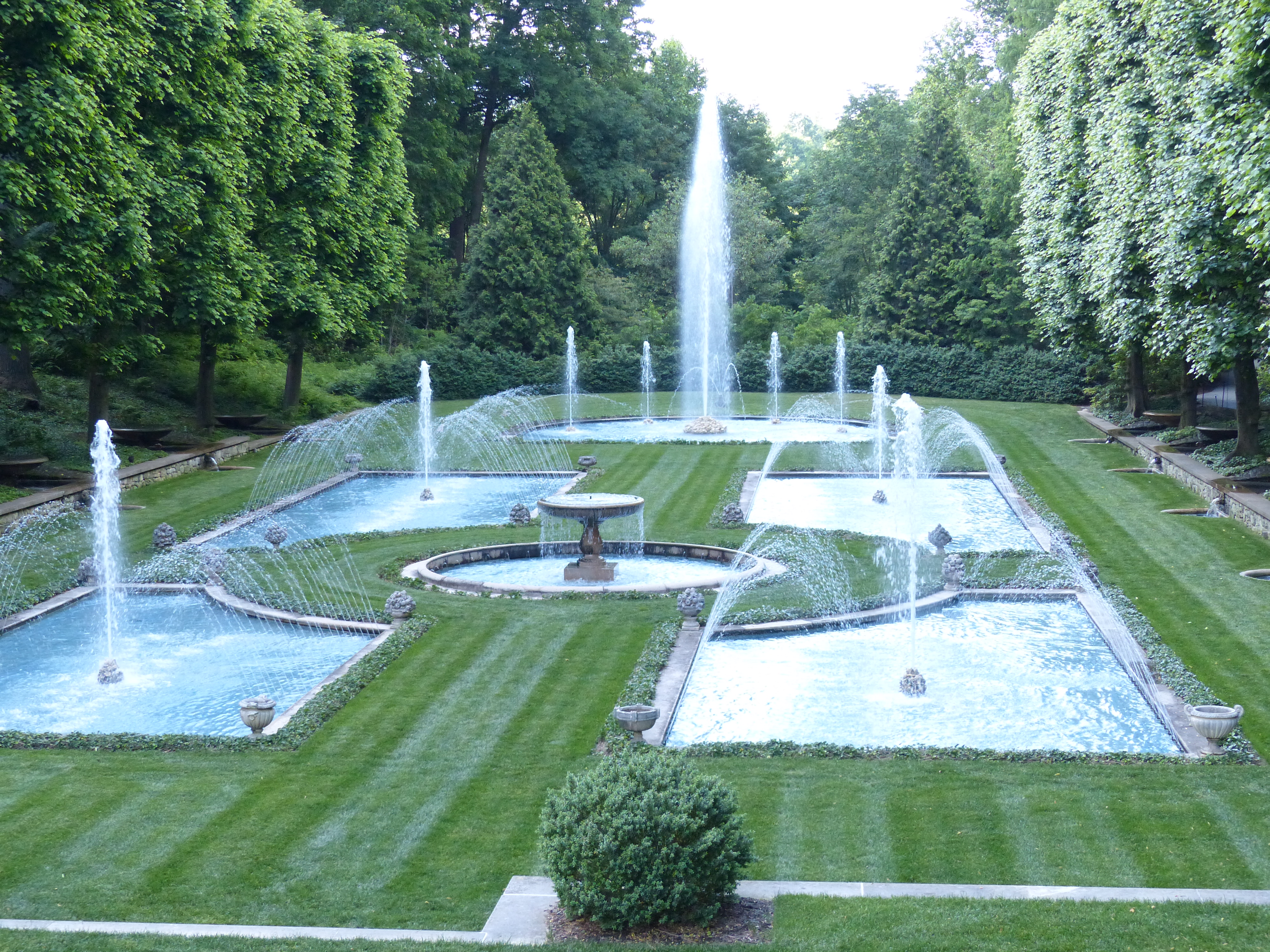 I love the haunting feeling of the top photo, and the way it puts us in proper perspective. It’s April 2006. We’re at Longwood Gardens with our twin granddaughters, just below the eye of water (see below). Trees, water, grassy lawns and blossoming shrubs are welcoming the best part of Spring, accompanied by the sound of cascading water in the background.